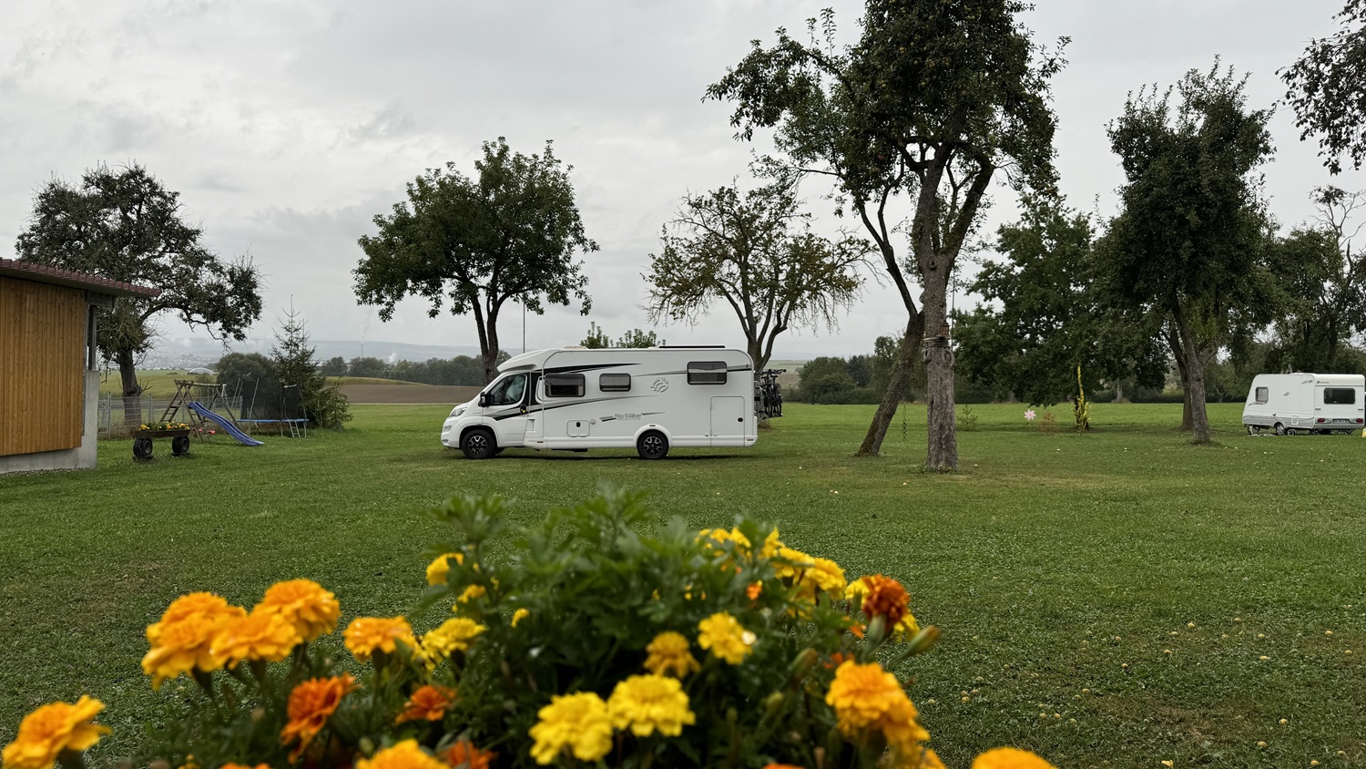 Nach einer regnerischen Nacht auf dem schönen Areal von Bauer Josef