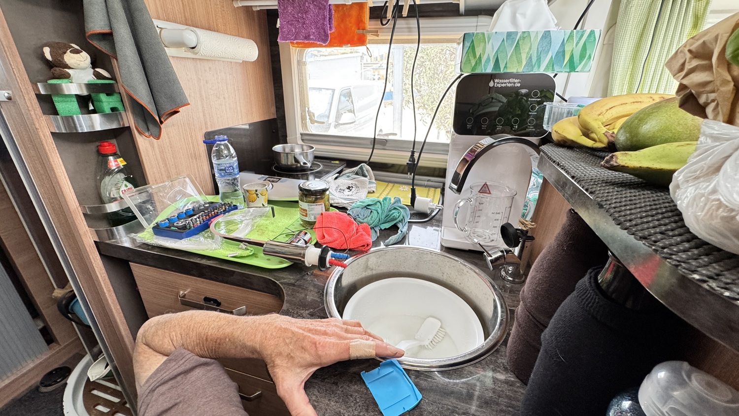 Ein windig schöner Tag beginnt. Der neue Wasserhahn sollte eintrudeln.