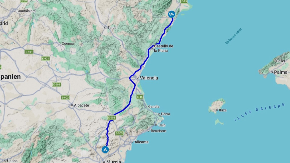 Nach der schönen Vollmondnacht im Weingebiet Jumilla ist unser Ziel